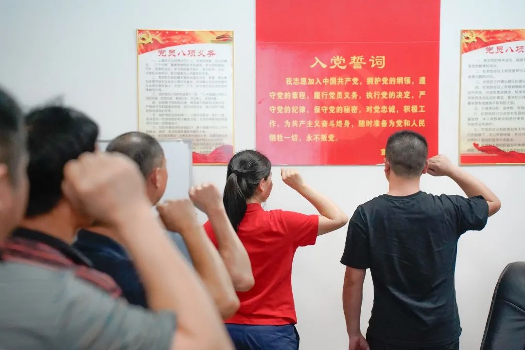 在入黨介紹人陳明同志的領(lǐng)誓下,李海燕同志及全體黨員宣讀了入黨誓詞。參會(huì )同志們全體站立,表情嚴肅眼神堅定,懷著(zhù)為共產(chǎn)主義事業(yè)奮斗終身的信念,舉起右手莊嚴宣誓,錚錚誓言在大家耳邊縈繞,紅色種子在新黨員的心中悄悄埋下靜待發(fā)芽,黨的精神薪火相傳,生生不息。