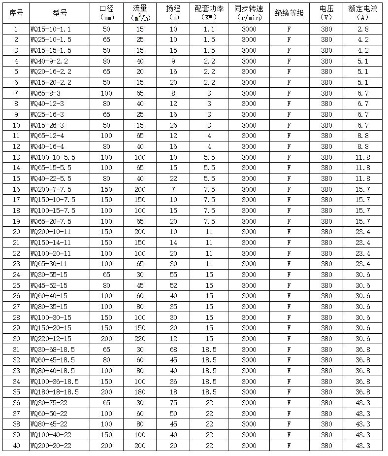 新一代WQ型污水泵除了具有無(wú)堵塞、防纏繞、節能效果優(yōu)良等特點(diǎn)外,公司自創(chuàng )的高精度泵體,雙流道的葉輪流道設計,大幅度提高流道通過(guò)性能,在使用過(guò)程中,效率高,功率曲線(xiàn)平坦,不易過(guò)載。