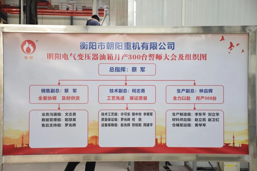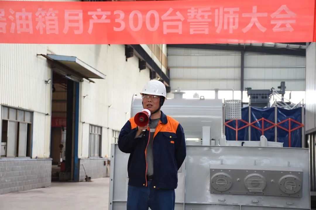 今天的宣誓在我們每個(gè)人的心中種下一個(gè)火種,將我們全體朝陽(yáng)人團結一心、齊心協(xié)力、精益求精,不斷創(chuàng )新,不斷突破,服務(wù)好客戶(hù),提升好自身。以做好明陽(yáng)電器月供300臺變壓器油箱為起點(diǎn),攻艱克難,持續追求卓越,不斷超越自我,做出一個(gè)客戶(hù)滿(mǎn)意、員工幸福、茁壯成長(cháng)般“驕陽(yáng)似火”的朝陽(yáng)集團。